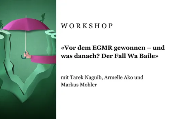 Am 25. Februar 2025 von 12.15 bis 13.45 Uhr findet der erste Online-Workshop zur Umsetzung und den Auswirkungen von EGMR-Urteilen in der Schweiz statt. Tarek Naguib, Armelle Ako und Markus Mohler berichten aus unterschiedlichen Perspektiven darüber, was das Urteil im Fall Mohamed Wa Baile (nicht) bewirkt hat und zu was die Schweiz nun verpflichtet ist. Melden Sie sich jetzt für den Workshop an!